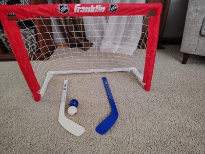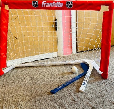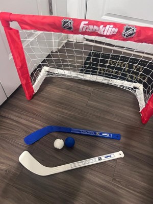 The Franklin Sports Mini Hockey Goal Set is exactly what you need to get the mini hockey started! This set comes with a mini goal, two mini hockey sticks (one right, one lefty) and two mini hockey balls so you have all the components you need to get the game started. Plus the goal assembles in seconds so you can spend more time in the game and less time on setup. Play indoors or out, or take it with you on the go. With this mini hockey goal set you can always get in the game!