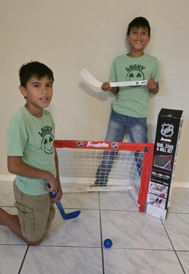 [This review was collected as part of a promotion.] Our family loves to stay active and off electronics and the Franklin Sports Mini NHL hockey goal, stick and ball set is perfect for my little one! She is 18 months old and this is absolutely PERFECT for her learning to play hockey like her siblings. The net is so easy to set up it took me only a minute for play time fun with the family. Its perfect size for little ones but my 8 year old still wanted in on the action and teach the little one how to play. The set comes with a net (I also used it for soccer for the little one), 2 small hockey sticks and 2 foam balls to make play time fun AND safe. I was lucky enough to recieve this Hockey net set as a gift for my review but as a hockey loving family that just had a baby boom I see me purchasing more in the future for a fun Christmas or birthday gift. Perfect for any girl or boy for easy playtime.