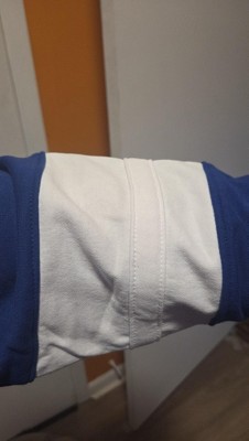 Really thick hoodie. Nice quality. I'd give it 5 stars but I'm bothered by it not looking exactly like the picture. I really like the two white stripes on each sleeve that's shown in the picture. You can see the stitching of a white strip where the middle blue part would be as if that's cover the blue but I don't know why that would be? But if they wanted to change the design to just 1 big solid white stripe then I don't know why they wouldn't just sell the 2 stripes as if and then discontinue and move on to the 1 solid design. I don't think it's a mistake since I ordered 2 hoodies and both have it. Either way, I'm fine with it. I'll still wear it, I would have just preferred to have the 2 stripe look.