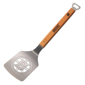 Get grilling with an officially licensed Boston Bruins Classic Sportula grill spatula. BRUINS is stamped on the brass-riveted, hard maple handle, the team logo is laser cut through the heavy-duty stainless steel blade, and the integrated bottle opener adds the finishing touch. Officially licensed by the NHL for use by Sportula, a YouTheFan brand.