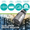 Get an efficient, high-performance sink attachment for faucets with our 1.5 GPM Dual-Threaded Pressure-Compensating Dual-Spray Faucet Aerator. This practical, energy efficient kitchen faucet aerator gives you forceful streams of water with annual savings water and heating costs. Our water-saving kitchen faucet aerator uses pressure compensating technology to provide a consistent and steady spray at nearly any water pressure. You can use the splash-free bubble spray setting that keeps the water from splashing out of the sink and onto countertops or floors. You can also switch to the full-force multiple stream needle spray for strong, excellent coverage.This tough, corrosion-resistant kitchen sink aerator is a welcome addition to any kitchen sink undergoing home improvement. We use solid brass, protective chrome finish, and high impact-resistant polycarbonate thermoplastic our kitchen sink aerators so you get a corrosion-free fixture that lasts for ages. Niagara Conservation sink faucet aerators are durable, stylish energy savers that don't compromise on getting things clean as a whistle.