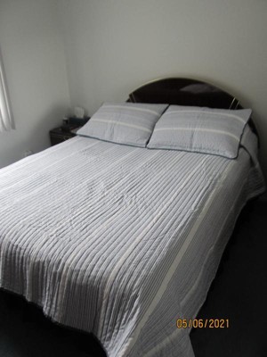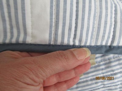 [This review was collected as part of a promotion.] I have all queen size beds in my home and I'm always hesitant when it comes to picking the size where it says Full/Queen because it winds up being catered more towards a Full then a Queen BUT this Brooklyn Loom Niari Yarn Dye Quilt Set does actually fit a queen size bed beautifully. I love the classic horizontal yarn dye stripe in gray and blue. It gives a relaxed chic and comfortable ensemble . It also has the quilted textured look and feel. The underside is soft with no scratchy materials against the skin and it's a solid blue color. It is finished off with an impeccably stitched blue edge to complete and compliment a finished look. This is also carried over to the shams to have a cohesive look. Quality material with no loose threads or fraying anywhere. This set is a great way to update and brighten your bedroom or a guest bedroom. It also makes a wonderful housewarming gift! By the way, this is easy care machine washable which makes me love it even more. If you are in need of a quilt/comforter set that looks simply chic that is easy care and machine washable.... then I highly recommend this set! You will not be disappointed.