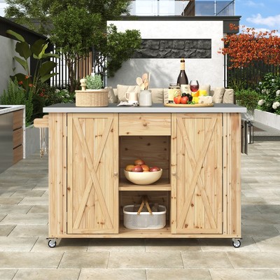 NicBex Outdoor Kitchen Island with Steel Top & Rack,Solid Wood Grill Cart for Big Green Egg Grills,Storage Cabinet Dining Table,Gray