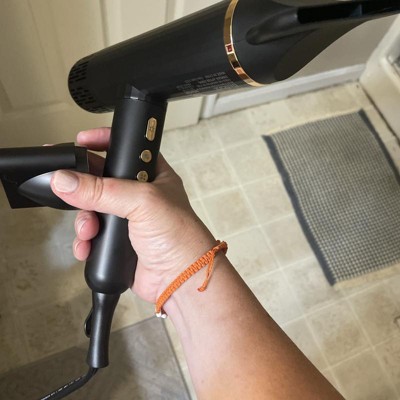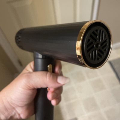 [This review was collected as part of a promotion.] This is a very comfortable to hold but powerful 1600 watt blow dryer. It comes with 3 attachments and there's a filter cleaning indicator with an easy to remove filter cap. It even has an automatic memory function that can record your use habits and restart it in this gear! It has a beautiful design with a black body and gold buttons that make it look very high end. A high quality, professional blow dryer! I received an incentive to write this review.