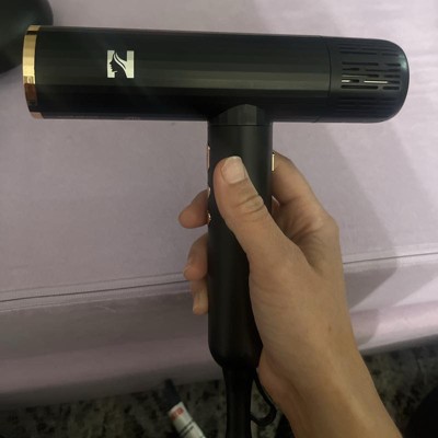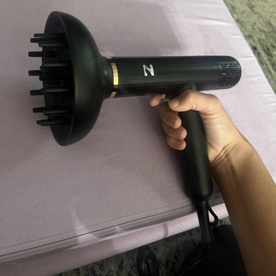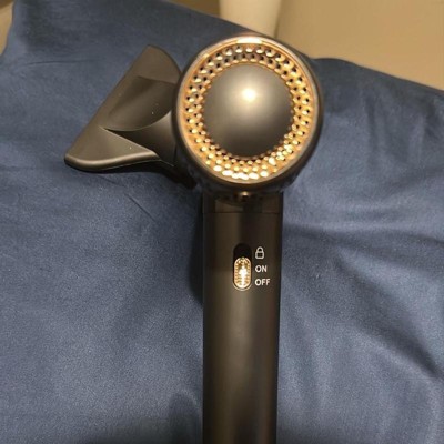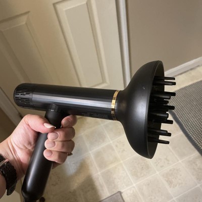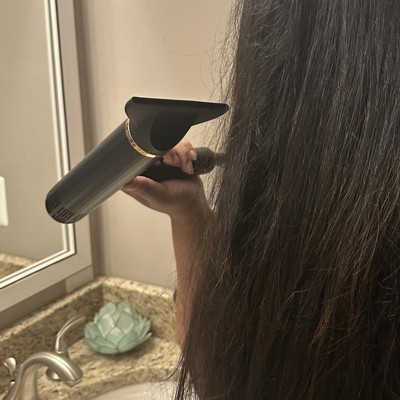 [This review was collected as part of a promotion.] This is a really awesome hairdryer. My favorite feature of it is that the attachments are magnetic so they’re super easy to put on in a hurry no twisting at all. I use the diffuser first on my curly hair and it worked really well. It dried very quickly and it’s really lightweight to hold . The handle is very smooth and it’s easy to hold, but there’s no grip on it so that takes a little bit of getting used to. It’s very sleek looking, and it would look very nice being displayed in the bathroom on a hook. I received an incentive to write this review.