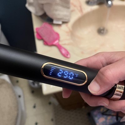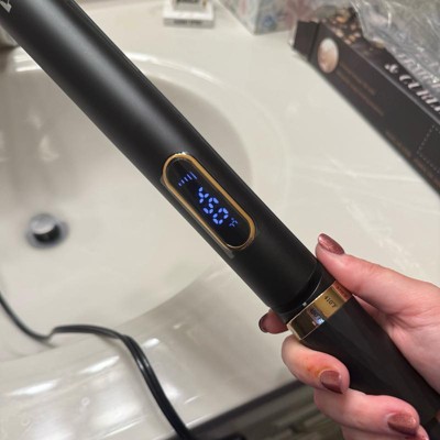 [This review was collected as part of a promotion.] This curler/straightener has some great features that make it easy to use! The highest temp is 450 degrees which is great for my thick hair, to get to that temp you twist the bottom to the desired temp, very interesting and I’ve never seen anything like that before. The other feature I like is the locking feature which I used in my photo to be able to hold the two sides together for easy curling, basically making it a device I can use with one hand! Def recommend! I received an incentive to write this review.