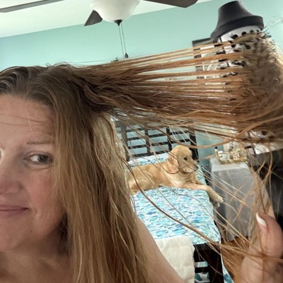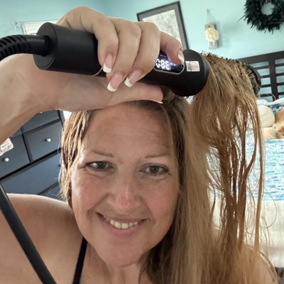 [This review was collected as part of a promotion.] Really cool. There is no air flow so it’s easy to manage with very long hair. I was able to dry my hair flat and straight easily. In the front and on the ends I like a curl and it was easy to do. The handle gets hot up by the brush part so you have to keep your hand low on the handle. Controlling the temp so precisely with the screen was helpful. It was easy to use and easy to maneuver. I do feel it gave my hair a shine too. I received an incentive to write this review.