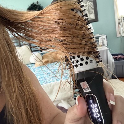 [This review was collected as part of a promotion.] I’m a bit divided on this straightening brush. It’s very lightweight and easy to use. The knob to turn it on makes it very user-friendly. I have wavy hair and I felt like I had to do several passes to get my hair to what it was in the after pic. I will say that it doesn’t completely straighten my hair (I tried it on both the lowest and highest settings) but it did give me pretty good volume in the after pic - almost like a blowout. The bristles are a unique feature, but it also makes it so that your hair gets stuck in them. I received an incentive to write this review.