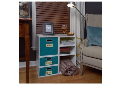 Let your creativity run wild with Cubo! This innovative set of 2 storage cubes by Niche are designed to fasten together in any direction! Connect them in any way you like. In a row, in a pyramid, in a U or L shape or countless other configurations. Start small and add on later. Cubes connect to one another with spring pins, making it easy to customize and create a storage system just for you with a single cube to a set of 12 or more. Niche storage cubes are actually cubes! With interior dimensions of 12 1/8" x 12 1/8" x 12 1/8", they can be used in any direction. There's no "right" way to use them because all sides measure the same! Who ever said all cubes had to face the front like a bookcase? Cubo storage cubes can attach in any direction, which opens up a myriad of new design possibilities. Turn one to the right, turn another to the left. Keep one facing front and still another facing the back. Perfect to clean up clutter in closets, entryways, laundry & storage rooms, as a bookcase, nightstand or media storage, in a classroom or children's room-these cubes fit anywhere! No tools EasySlide and LockDowel assembly allows pieces to simply snap together and lock into place for a sturdy, hassle-free build in less than 2 minutes. No more searching for the right size screwdriver or dropping tiny screws. Just snap into place and go. Less hardware and fewer small parts mean less plastic packaging and less waste