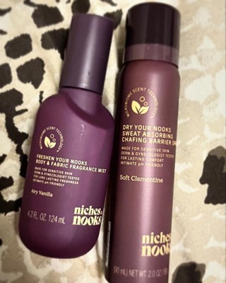 Niches & Nooks Sweat Absorbing Intimate pH Balanced Chafing Barrier Feminine Spray - Soft Clementine - 2oz
