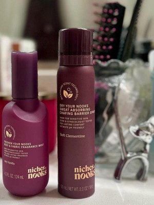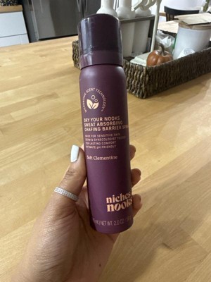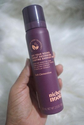 [This review was collected as part of a promotion.] The niches&nooks sweat absorbing chaffing barrier spray is the best spray I’ve ever used! It has a great and easy to use package. It’s very effective in keeping sweat and odor completely away. The scent is amazing! I tried the Airy Vanilla and it smells so good. It’s not over powering and gets the job done!