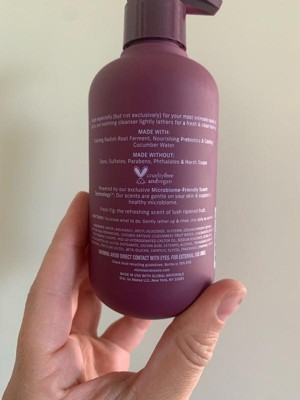 [This review was collected as part of a promotion.] No harsh ingredients. Doesn't disrupt pH balance. Has a great long lasting smell. Lathers nicely and leaves you feeling fresh and clean. Has a pump dispenser for easy access.