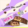 - Candy-Bar Taste, Protein-Packed! Crunchy almonds, soft protein, and dreamy chocolate—sounds like candy, but it’s Nick’s!