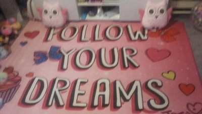 Inspiring her fans to find the courage and confirdence to follow their heart and chase thir dreams is Jojo Siwa's goal. Let your young fan be inspired by this message every day with the Jojo Siwa "Follw Your Dreams" jumbo rug. Measuring 4'6"x6'6" it is perfect for any room including the den, family room or bedroom. Digitally printed for exceptional design detail and color, this will be a favorite decor item for your Jojo Siwa fan.