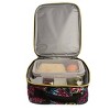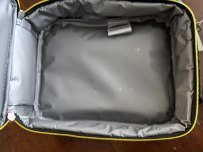 This lunch tote opens to reveal a large compartment with double durable zippers. It is big enough to hold sandwiches, snacks, drinks, utensils, and more. The insulated interior keeps food and drinks cold, and the padded carrying handle allows for easy transportation.