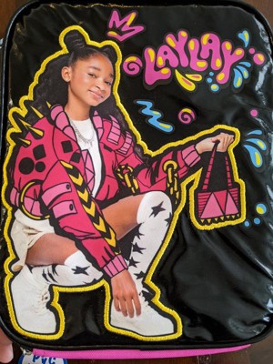 Laylay lunch bag who wouldn't be in love?! My daughter absolutely loves Laylay and was ecstatic to get this lunch bag! The lunch bag is very roomy on the inside, it can hold quite a bit and with an ice pack it keeps her lunch nice and cool until lunch time with no worries of the food getting warm. We are able to fit her 14 ounce drink bottle, snacks, a sandwich and a fruit cup in this bag. The padded handle is easy to grip onto and comfortable to hold. The front picture of laylay is stitched onto the bag and adds a beautiful stylish touch to the bag. The zipper has a cute keychain connected to it that got my daughter pretty excited! We also love that on the back of the bag there is a pocket for a name tag to go so no more need to sharpie a name onto the bag itself!