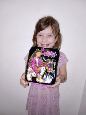 This is such a fun spunky lunchbox, featuring Lay Lay and bold hot pink, yellow, and light blue accents! The handle is padded, the back has a name tag, the sides have a cute themed design, and the interior is a easy to wipe clean material.