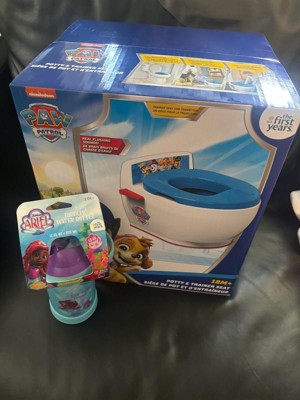 Potty training is totally pawsome with this 2-in-1 Paw Patrol Potty & Trainer Seat! With Chase, Skye, and friends by their side, toddlers will be more easily engaged when they're ready to try potty training. The handle on the tank can be pushed down for a fun flushing sound after your child uses the potty. This can also help make flushing the "big" toilet natural and less scary later on when they transition. Potty training is easier for parents too, with the lift-out pot's smooth sides making it easier to clean up after successful attempts and a potty ring with a built-in splash guard for less mess. When your child is ready to move from the potty to the adult toilet, the detachable trainer ring helps to ease the switch to the larger seat.