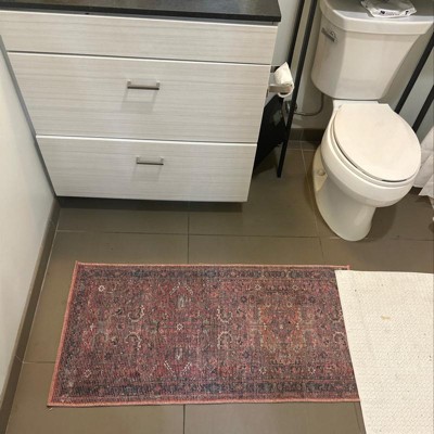 The colors in this rug are beautiful! It’s definitely on the thinner side, but it was perfect for our guest bathroom. Also, easy to vacuum.
