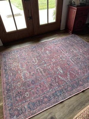 The color was way off what’s advertised on the 6 x 9 - it was a much brighter and vibrant red, almost more of an orange, so it did not have that vintage/faded feel at all. The pattern is also clearly printed/dyed into the rug…sometimes you get lucky and printed rugs can look decent, but this looked as inexpensive as it was.