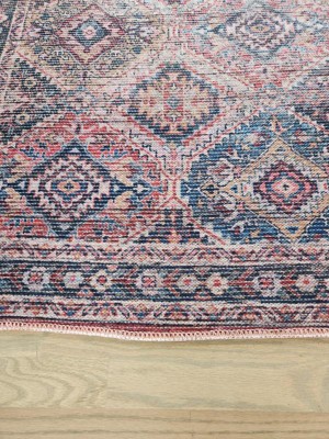 This is my 3rd one of the Nicole Curtis rugs. I tried two other brands of washable rugs and didn’t like the texture or quality. These are lovely, feel good to walk on (use a rug pad under) and clean up so easily. Even with a young kid, dog, and cats I’ve only needed a baby wipe or dish towel to clean. This particular pattern is much more blue in person.