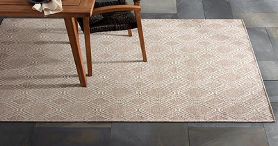 [This review was collected as part of a promotion.] This low-pile textured area rug is not only stylish, it’s also comfortable and durable, adding the perfect touch to our outdoor patio area. I love the sophisticated, elegant diamond pattern and the neutral taupe shade of this rug, which complements our patio furniture and decor nicely. The best part is that this easy to clean rug is UV fade and stain-resistant, making it the perfect choice for outdoor/dining use.