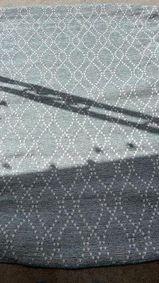 [This review was collected as part of a promotion.] *Review* This is a very good sized indoor outdoor area rug. Well constructed. No fraying visible which sometimes happens as soon as you open the package with rugs. Stylish and also a bit neutral which is good because it can be used in more places. I don't think dirt will easily be seen. I'm not sure yet how it will hold up to high traffic of people and large dogs, but so far so good. Note that indoor use requires buying a rug pad for underneath if you have hard flooring. Otherwise, it slides all over the floor. Or with a playful dog will bunch into a wad against the couch. These sell for a reasonable price and are very worthwhile. Might be getting another soon for the dining room. I received this complimentary in return for my honest opinion.
