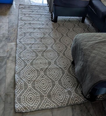 [This review was collected as part of a promotion.] This is a very pretty rug that I feel belongs best outdoors which is where mine is going come summer. It’s very thin and not great for inside in my opinion. It’s a very pretty rug with a slight shimmer to it.