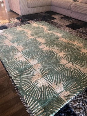 [This review was collected as part of a promotion.] This rug is approved by the whole family, as is the wrapping it came in 😂 The design is nice and the colors are lovely kind of a sage green and cream situation. The fabric is thick and feels good quality I expect it to hold up quite well! It’s soft to walk on and it adds an overall great look to the room!