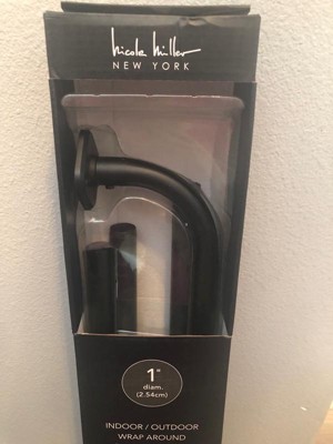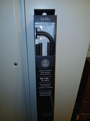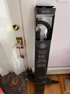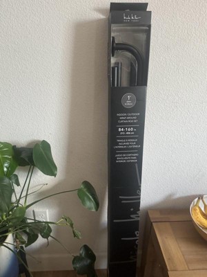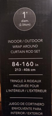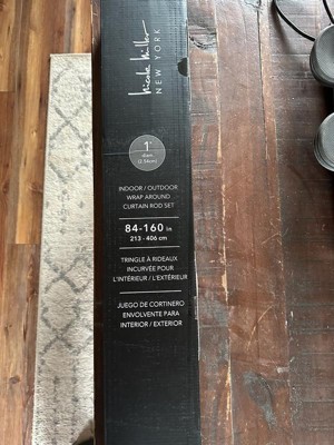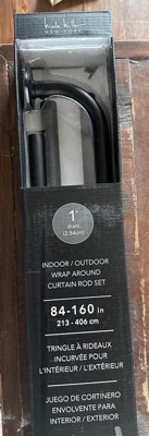 NICOLE MILLER NEW YORK Patio Chic Wrap Around Indoor Outdoor Dual-Mount Curtain Rod,Easy Install, Rust Resistant, Matte Black, Adjustable 84”-160”