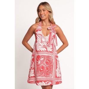 Turn heads in the Nicoletta Mini Dress - Red, featuring a bold floral print and a chic halter neckline with a playful front tie closure. The elasticized back offers a comfortable fit, while the mini length keeps it effortlessly trendy. Perfect for staying stylish at every event.