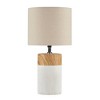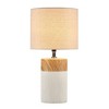 Elevate your decor and illuminate your home with the contemporary style of the 510 Design Nicolo Textured Ceramic Table Lamp. This round table lamp features a two-tone ceramic base in white with a brown wood grain pattern to create a stunning modern look. The drum lamp shade softly filters the light to provide a warm ambiance in your space. Flaunting a simple, yet gorgeous design, this modern table lamp adds a sophisticated charm to your home decor. Handle with care. Spot clean only.