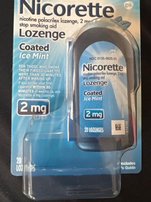 - One container of 20 Ice Mint flavored Nicorette 2 mg Nicotine Lozenges to help stop smoking