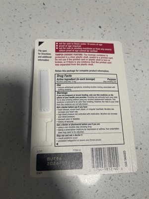 Nicorette 2 mg Coated Nicotine Lozenges to Help Stop Smoking are a small stop smoking aid that relieves sudden cravings quickly to help make quitting easier. This specially formulated smoking cessation nicotine lozenge slowly releases nicotine to combat cravings and reduce anxiety, frustration, irritability and restlessness associated with quitting smoking. With a coated outer shell, 2 mg nicotine lozenges feature a smooth, non-chalky texture and bold Ice Mint flavor that lasts longer than a craving and helps gradually diminish your dependence on nicotine over time. Available in a portable dispenser that fits easily in a pocket or purse, this smoking cessation product is perfect for use on the go. Take these Nicorette lozenges as part of your OTC nicotine replacement therapy if you smoke your first cigarette more than 30 minutes after waking. To improve your chances of success, use at least nine pieces per day for the first six weeks of the 12-week quit program with behavioral support. Do not use more than 5 lozenges in 6 hours. Do not use more than 20 lozenges per day. Always read and follow label directions. Start stopping with Nicorette Nicotine Lozenges, the first and only FDA approved coated lozenge—bold ice mint flavor that lasts longer than a craving. Amazing taste. Lasting carving relief.