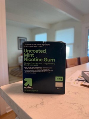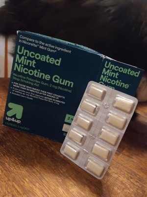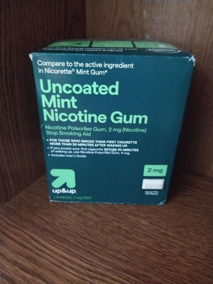 Compare to Nicorette Gum active ingredient. Double your chance to successfully quit smoking with up&up Uncoated Nicotine Polacrilex Gum, 2 mg (nicotine), Mint Flavor (when used as directed with a support program. Many people require several quit attempts to stop smoking). This product is a stop smoking aid for those who smoke their first cigarette more than 30 minutes after waking up. This product is part of a Nicotine Replacement Therapy, which is designed to wean your body off cigarettes. It helps to regulate, control and gradually reduce your body's nicotine cravings. Smoking has two addictive components, a physical and a mental need for the nicotine in tobacco. Nicotine gum addresses the physical need to smoke by reducing withdrawal symptoms, including nicotine cravings. Each piece of this mint flavored uncoated gum is sugar free and gluten free. American Cancer Society (ACS) supports nicotine replacement therapy to help people on their journey towards a smoke-free lifestyle.