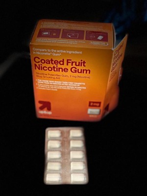 [This review was collected as part of a promotion.] The UP & UP brand Coated Fruit Nicotine Gum works great at curbing my cravings. The packaging is super informative, and the bold color really catches your eye. The gum packaging itself is perfect for on the go, and it could easily fit in my pocket or purse. You can smell the fruit flavor as soon as you open the box. The flavor was good and lasted a while, which is appreciated. Whenever I have a craving, I just grab a piece of gum and get almost instant relief.