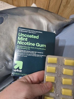 [This review was collected as part of a promotion.] The up and up Nicotine gum helps me to quit smoking. The gum is tough to chew and the packaging is hard to open. You have to be careful and follow the directions throughly. I chew 1 piece every twos hours to help with the urges. Great product but you have to be dedicated.