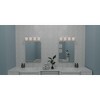 - Transitional Vanity Light: The Nielson Vanity Wall Light from the Blueprint Collection features a sleek geometrical design with clean lines. It lends this bath light a contemporary look that pairs well with various interiors and bathroom decor
