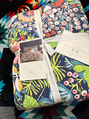 - THE SET: A an array of flowers and leaves in bright bold colors quilt and one standard sham, this quilt set is part of the Levtex Home Night Garden collection. Used by itself, as a layering piece or as a bedspread, this quilt is extremely versatile.