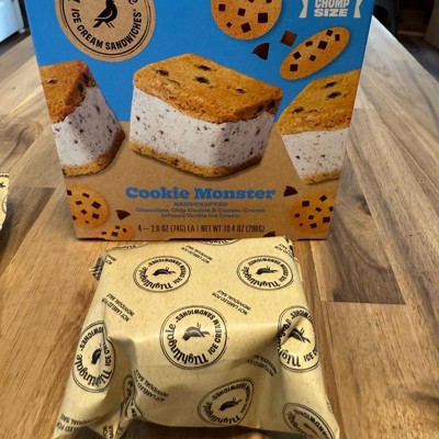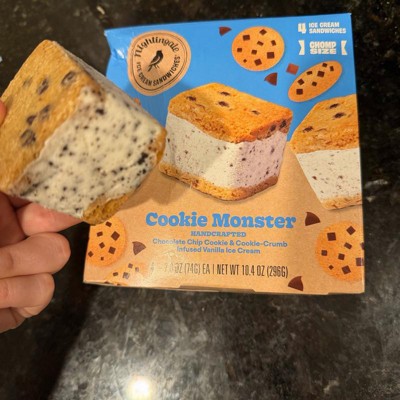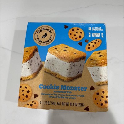 [This review was collected as part of a promotion.] Yum! These Nightingale Cookie Monster ice cream sandwiches were so good! It's kind of small but just the right size for a little treat. These had two chocolate chip cookies on the ouside and then chocolate chips in the ice cream, as well. Four come in a package, individually wrapped. Wrapper is very easy to open. Definitely recommend these if you love ice cream and cookies