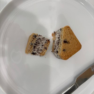 [This review was collected as part of a promotion.] The individually wrapped pieces were such a pleasant surprise. The rapper is notched and very easy to open. the cookie pieces on the top and bottom are incredibly delicious. They are rich and buttery chocolate chip cookies. the ice cream in the middle is full of cookie pieces that are yummy as well. The sandwich is perfect. I find the size to be generous, but not overwhelming. It also taste very fresh.