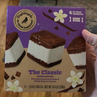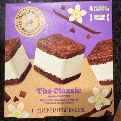 [This review was collected as part of a promotion.] I purchased this pack of four Nightingale The Classic ice cream sandwiches, and we really liked them! They each are a pretty good size- the perfect treat for after dinner. The flavor is really delicious. It’s a brownie cookie which you can really tell the flavor of, mixed with vanilla bean ice cream. My daughter absolutely loved it and already requested that I buy more the next time I’m at the store. Good buy!