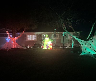 Make your Halloween extra spooky with an Oogie Boogie scene! This The Nightmare Before Christmas Airblown® Inflatable features a big green Oogie Boogie along with Lock, Shock and Barrel. Set up is in a snap for the easiest decorating ever. Just plug it in, stake it down and watch the magic unfold. Be the talk of the block with a Halloween Oogie Boogie scene inflatable!