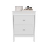 2 smooth-gliding drawers for organized storageCompact size ideal for small or large bedroomsDurable engineered wood constructionFlat surface for lamps, books, or personal itemsClean, modern silhouette complements various decorsCARB Phase II and TSCA compliant