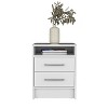 Spacious Drawers: Features two drawers (3.9"H x 12.3"W x 11.2"D) for storing personal items, keeping your space organized and clutter-free.Open Shelf: Includes one shelf (3.2"H x 14.5"W x 13.7"D) for easy access to essentials like books, glasses, or a bedside lamp.Compact and Functional: Measures 23.97"H x 17.71"W x 15.86"D, making it perfect for small to medium-sized bedrooms.Enhances Bedroom Decor: Combines modern aesthetics with practical storage, adding both style and function to your bedroom.Our furniture is made of the highest quality materials and is designed to last. You'll be able to use it for years to come.