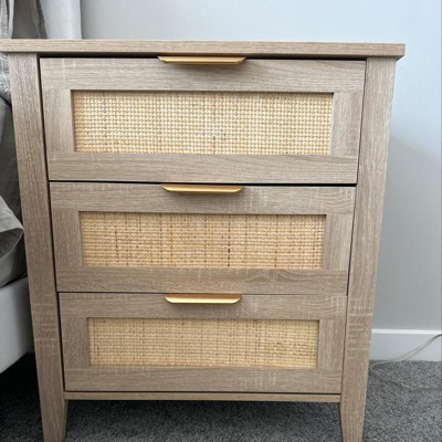 Nightstand, Rattan End Table, Nightstands with 3 Natural Rattan Drawers 1 or 2 pack