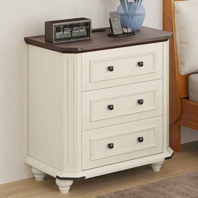 - Elevate your bedroom and living room organization with multifunctional nightstand. This compact design features 3 drawers and built-in charging station for easy organization of wallet, lamp, pads, phone, alarm clock, pillows, storage basket, and other essentials.