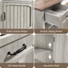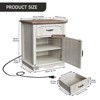 This 2-piece white nightstand set features a charging station with 2 AC outlets and 2 USB ports. Its farmhouse-style wood-textured finish in white and brown fits various spaces. Measuring 19.69"L x 15.75"W x 19.49"H, it offers ample storage with a tabletop, cabinet, and drawer. Made of sturdy MDF and engineered wood, it's durable and stable. Easy to assemble with instructions, and premium service is available.