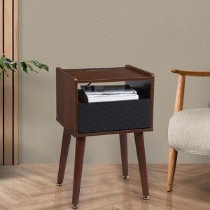 Rustic Nightstand with Charging Station - 3-Tier Bedside Table with USB Ports & AC OutletsMerge farmhouse charm with modern functionality with this rustic 3-tier nightstand—designed to be your ultimate bedside companion. It keeps devices charged, essentials organized, and small bedrooms clutter-free, all while adding a cozy, country-inspired warmth to your sleep space. Whether you’re outfitting a dorm, apartment, or guest room, this compact yet sturdy piece balances style and practicality seamlessly.1. Built-In Charging Station: Power at Your Fingertips (No More Cord Chaos)Say goodbye to searching for wall outlets or tangled cords—this nightstand puts charging front and center:2 USB ports + 2 AC outlets: Charge up to 4 devices simultaneously: plug phones, tablets, or wireless earbuds into the USB ports, and use the AC outlets for lamps, alarm clocks, or a small humidifier. All ports are 110V compatible, matching standard U.S. electrical systems.Clutter-free design: The charging module is integrated into the nightstand (no unsightly external adapters), keeping cords neat and within arm’s reach. You can charge your phone overnight while it sits on the tabletop—no more reaching across the floor for a charger.Safe & reliable: The electrical components are built to meet safety standards, preventing overheating or short circuits—perfect for overnight use.2. Rustic Farmhouse Style: Warmth That Complements Any DecorCrafted to elevate cozy, lived-in spaces, this nightstand embodies rustic charm with durable materials:Distressed brown finish: The warm, weathered wood tone adds depth and character, pairing beautifully with farmhouse, cottage, or even industrial decor. It complements wooden bed frames, linen bedding, and vintage-inspired accents (like mason jar lamps or woven baskets).High-quality engineered wood (MDF): Unlike flimsy particleboard, MDF is dense and resistant to warping or splitting, ensuring the nightstand holds up to daily use (e.g., placing heavy lamps, opening/closing the drawer). The smooth surface is easy to wipe clean—just dust with a cloth or spot-treat spills.Timeless silhouette: The rectangular shape and simple, clean lines avoid trendy designs that fade—this nightstand will stay stylish for years, even as your decor evolves.3. 3-Tier Smart Storage: Organize Essentials Without Wasting SpaceWith a drawer and two open shelves, this nightstand maximizes storage in its compact footprint:Smooth-glide drawer: Perfect for hiding small, valuable items like jewelry, watches, sleep masks, or TV remotes—no more losing tiny essentials in the sheets. The drawer slides open and closed quietly (no squeaking), so you won’t disturb your partner when grabbing something at night.Two open shelves: Use the upper shelf for frequently accessed items (a current book, a glass of water, or a potted succulent) and the lower shelf for bulkier items (stacked magazines, a decorative basket for extra blankets, or a pair of slippers).30 lb tabletop capacity: Sturdy enough for a large table lamp, a stack of books, and your phone—no worrying about the surface bending under weight.4. Space-Saving & Versatile: Perfect for Small SpacesMeasuring 14.6"D x 16.5"W x 25.6"H, this nightstand is designed to fit where larger furniture can’t:Snug beside any bed: Works with twin, queen, or king beds—its narrow depth means it won’t stick out too far into walkways, making it ideal for tight bedroom layouts.Multi-room use: Beyond the bedroom, it functions as a compact side table in living rooms (hold a lamp and remote) or home offices (charge devices and store notebooks). It’s also great for dorms or guest rooms where space is at a premium.No wasted height: The 25.6"H design keeps the tabletop at a comfortable height for bedside use (easy to reach when lying down) while using vertical space for storage.5. Easy Assembly: Set Up in 15–20 Minutes (No DIY Expertise Needed)You don’t need tools or experience to put this nightstand together—setup is straightforward:All hardware included: Everything you need (screws, dowels, instructions) comes in the box—no trips to the hardware store.Tool-free (or minimal tool) setup: Most parts snap or screw together with basic tools (often included), and the instructions use simple illustrations (no confusing technical jargon).Quick build time: Even beginners can assemble it in 15–20 minutes alone—faster with a helper. Once done, it’s ready to use immediately.