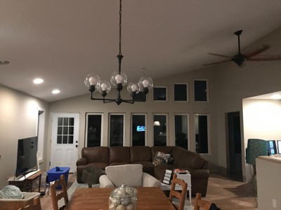 [This review was collected as part of a promotion.] We had been looking for quite some time for the perfect replacement fixture for our Dining Room. This 5 light chandelier in olde bronze finish was perfect! It was easy to install and compliments the aesthetic of our traditional home with dark wood trim.